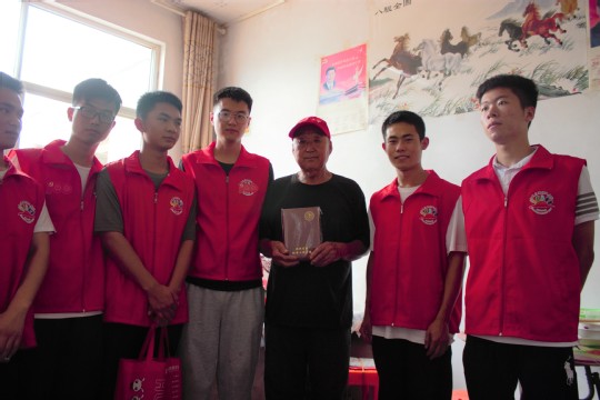 当天上午,队员们来到了94岁的抗美援朝老兵、光荣在党50年的赵宪政爷爷家中,与赵宪政爷爷进行了亲切交谈。在交谈中了解到赵爷爷曾荣立三等功,政府授予其中国人民志愿军抗美援朝出国作战70周年、光荣在党50年等纪念章。同时,赵爷爷给我们讲述他在抗美援朝战争中的难忘经历,热情地教我们朝鲜语。老人虽患有气管炎,但体格硬朗,当提及在朝鲜的经历时赵爷爷仍是心潮澎湃。赵爷爷说:“少年强则国强,少年智则国智。希望你们了解那个艰苦的年代,期望当代青年能够创造更美好的未来。”
