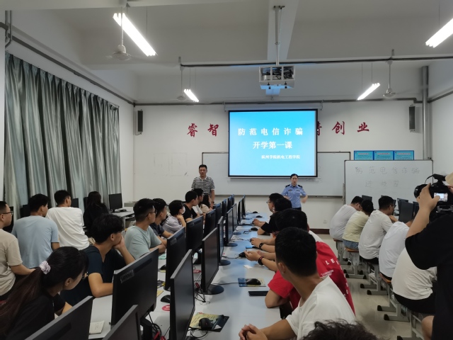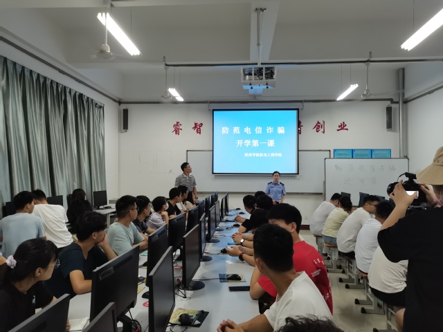 为增强学生的防诈骗意识,提升防诈骗能力,8月30日,必赢242net官网联合彭李派出所在工程训练中心201教室开讲防诈骗主题的开学第一课。本次开学第一课的开讲嘉宾是彭李派出所资深民警张警官,必赢242net官网辅导员、全体学生干部参加本次活动。