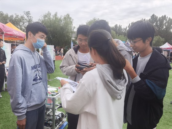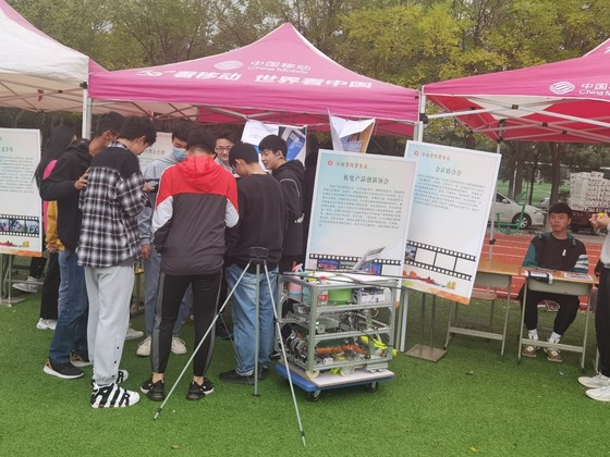 “百团大战”开战之前,各社团有序的布置场地,繁忙又有秩序的运作彰显出学生社团的生机与活力。百团大战期间,必赢242net官网的五个校级社团滨州学院爱创新通讯社、人工智能协会、机电产品创新协会、工程图协会、智能飞行器社团也积极招纳新生力量,通过形象的海报宣传,科技作品展览,社团负责人员现场介绍等丰富多样的形式,吸引了众多对科技创新、杂志设计、技术编程等感兴趣的新生。同学们在自己感兴趣的社团前询问,并就自己的疑问向社团相关负责人员提出相关问题,社团负责人都一一做出了详细的解答,听过耐心详细的答复后,同学们在报名表上填入自己的个人信息,并扫码加入对应的QQ群来等待下一步的见面会通知。招新现场氛围火热,热闹非凡,每个社团都使出浑身解数,吸引同学们的注意力。随着表演活动的结束,百团大战活动也渐渐落下帷幕。